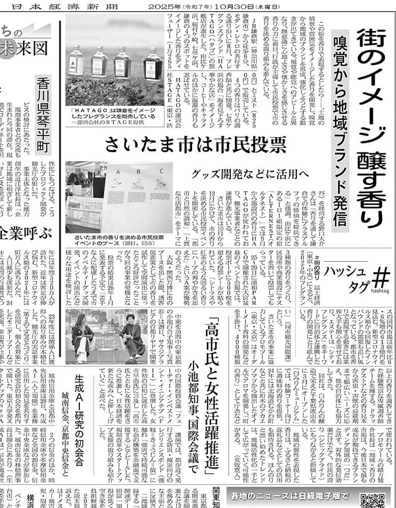 このたび、当社は2025年10月30日付の日本経済新聞朝刊に、当社の地域ブランディング支援に関する取り組みが掲載されましたことをお知らせいたします。 https://www.nikkei.com/article/DGKKZO92247340Z21C25A0L92000/